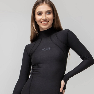 Добре, коли рукави й манжети мають еластичну стяжку або петлю для пальця. Завдяки цьому рукави не задираються під курткою. Високий комір із блискавкою дозволяє регулювати тепло: за потребою можна просто розстебнути верхню деталь комплекту термобілизни, або застебнутися щільніше, якщо холодно й дме вітер.