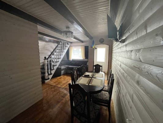 Котедж "Тризуб" розташований в селі Микуличин, на відстані 1,5 км від центральної дороги. Котеджі "Тризуб" являють собою два двоповерхових будинки, в яких одночасно може розміститись до 12 гостей. Кожний котедж розрахований на 4-6 осіб. По проекту вони ідентичні. Тільки в одному котеджі на другому поверсі дві окремі кімнати, а в іншому - прохідна кімната. На першому поверсі знаходиться кухня-вітальня (електрична плита, мікрохвильова піч, холодильник, електрочайник, посуд, мийка, обідній стіл, розкладний диван, вішалка для одягу) та санвузол (душова кабіна, туалет, умивальник). На другому поверсі — 2 кімнати (у кожній є двоспальне ліжко, вішалка для одягу; в одній також є телевізор, балкон). Вдало підійде для відпочинку сім’єю. Подача гарячої і холодної води відбувається цілодобово. На території котеджу "Тризуб" є сауна, альтанка, гойдалка, місце для пікніка з мангалом та автостоянка. Відстань до ТК "Буковель" - 25 км.