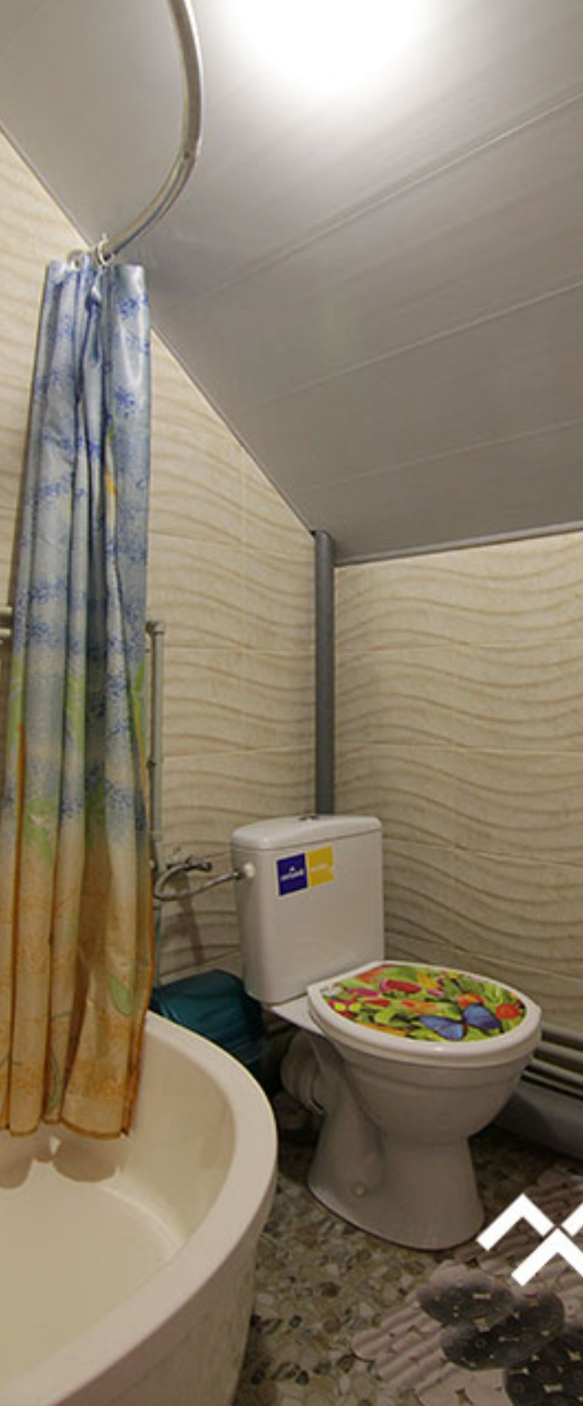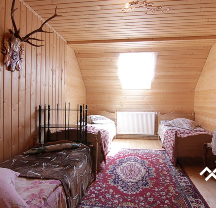 - П'ятимісний — 4 односпальні ліжка, диван, комод; санвузол на поверсі (душ, туалет, умивальник).