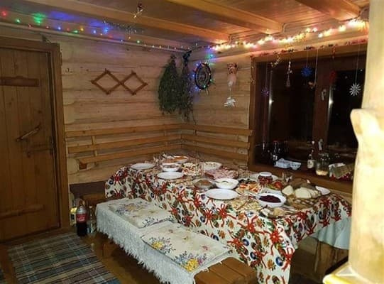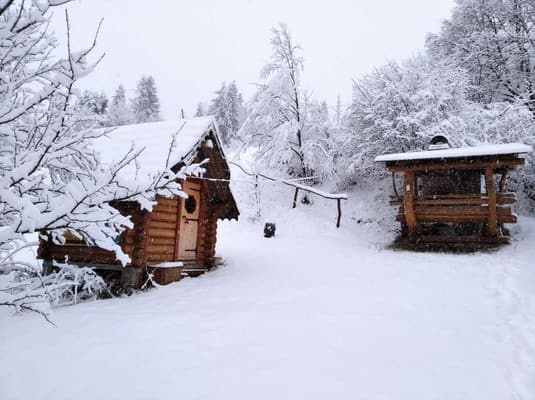 Їжу можна приготувати на мангалі або кухонному вогнищі у дворі будинку. Гості також можуть замовити їжу за додаткову плату. Їжа для гостей готується з домашніх продуктів: молочні та кисломолочні продукти, овочі, фрукти, продукти птахівництва, чаї з лісових трав.У котеджі № 2 є кухня для самостійног оприготування їжі.