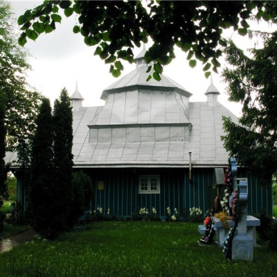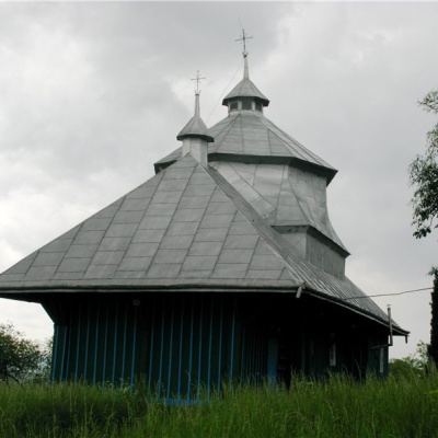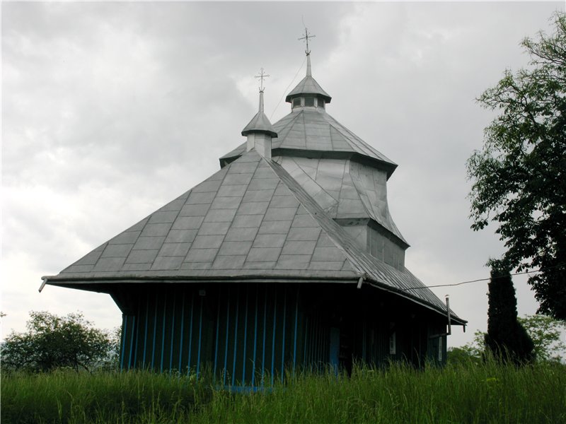 Церква являє собою цікавий зразок дерев'яних храмів перехідного типу. У ній органічно поєднуються архаїчні риси хатніх та більш нових купольних храмів. Дах стрімкий, посеред бабинця є дзвіниця приземлених форм. На краях даху знаходяться невеличкі декоративні куполи.