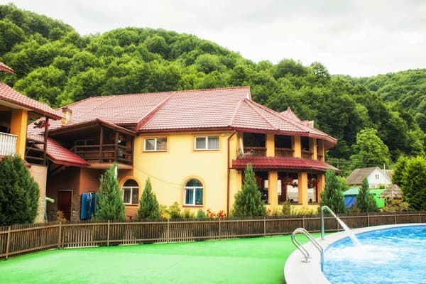 Ресторан, де подають страви української та закарпатської кухні, функціонує на території комплексу.