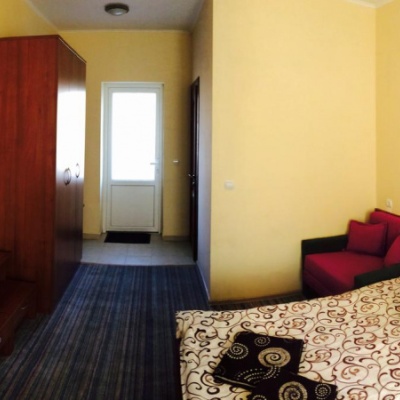 Валентин Джигар 2 місяці тому: "Номер на двох в зеленому корпусі тісний, але якщо відразу в ліжко то норм, сніданок без кулінарних шедеврів та не дуже різноманітний, але на четвірку з плюсом вартує дякуючи гарним дівчатам-офіціантам. Під час нашого перебування воду міняли один раз (понеділок в одному та вівторок у іншому басейні), так що заїжджати варто в понеділок, у нас так склалось. Проживання дає право на безлімітне користування басейнами тому зранку до приізду відпочивальників та від восьмої вечора до ранку практично пусто, можна релаксувати. Кіоск на територіі суперовий з помірними цінами. На рахунок винного бювету я не фахівець, але щоранку в господарському візку привозились пятилітрові каністри пластикові, напевно вино??? , і в самому приміщенні не дуже чисто. Загалом враження хороші, рекомендую."