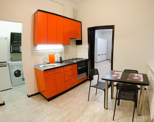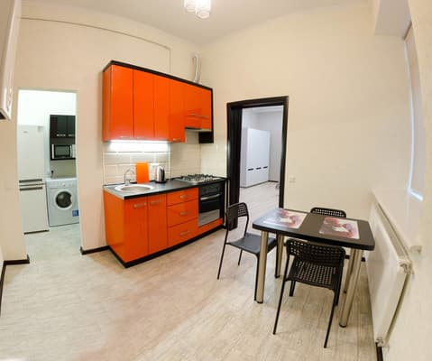 Гості квартири можуть самостійно готувати їжу на обладнаній кухні. Поруч розташовані кафе і ресторани.