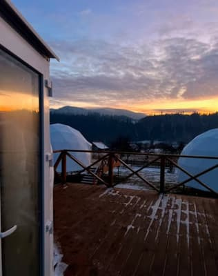 Апарт-готель "White Spot" розташований в селищі Микуличин. До послуг гостей 7 куполів в сучасному еко-стилі. Сім куполів - 7 планет: Нептун, Венера, Марс, Плутон, Сатурн, Юпітер, Меркурій. Кожен купол укомплектований всіма необхідними зручностями: зручною спальною зоною для 2 осіб та додатковими двоспальним місцем на другому поверсі, відкритою шафою для одягу, кондиціонером, халатами, капцями. Міні-кухня облаштована мікрохвильовкою, електричним чайником, кухонним посудом та приладдям. У ванній кімнаті встановлено душову кабіну, умивальник, туалет, є фен, рушники, засоби гігієни. До послуг гостей власна відкрита тераса, меню ресторану по QR коду, який є в куполі. В деяких номерах-куполах є ванна, яка встановлена в зоні відпочинку поруч з панорамним вікном. На території гості можуть скористатись чаном, за окрему плату. Відстань від апарт-готелю "White Spot" до центру Яремче складає 10 км, до підйомників Буковелю - 15 км, до водоспаду Гук - 14 км, до автостанції Микуличин - 3,1 км, до залізничної станції Микуличин - 4,3 км.