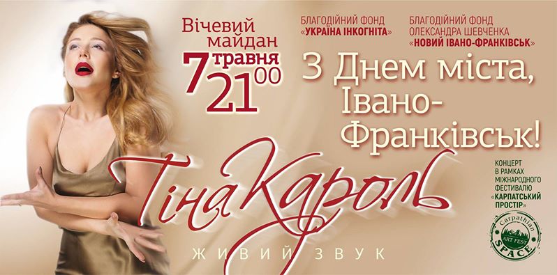 Також на сцені Вічевого Майдану, 7 травня, в День міста Івано-Франківська, о 21 годині виступить українська співачка Тіна Кароль. Концерт відбудеться за підтримки Благодійного фонду Олександра Шевченка "Новий Івано-Франківськ" та Благодійного фонду "Україна інкогніта".