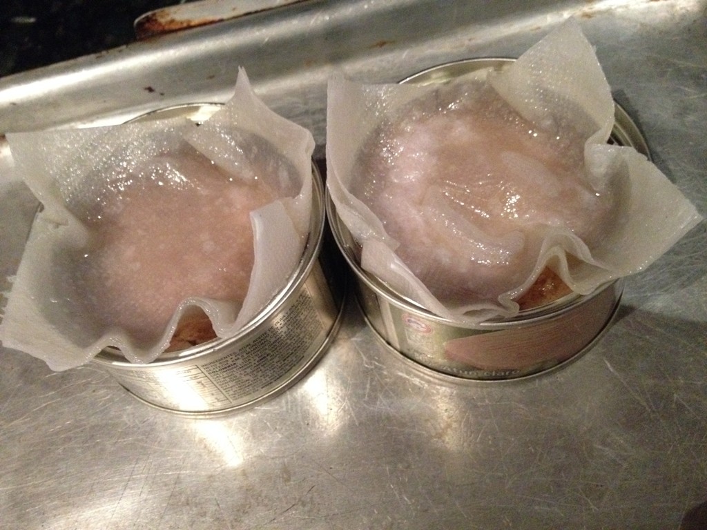 Накриваєте тунець зверху складеним туалетним папером і дочекайтеся коли папір замочиться маслом до кінчиків. Обов'язково залиште маленькі отвори для того, щоб все вийшло.