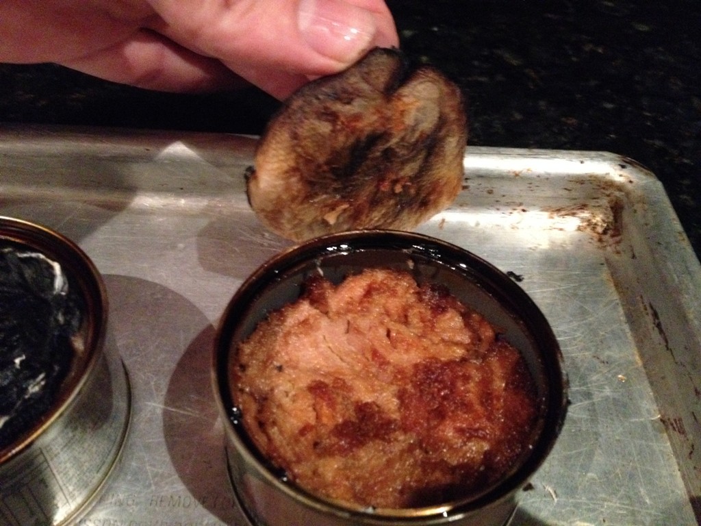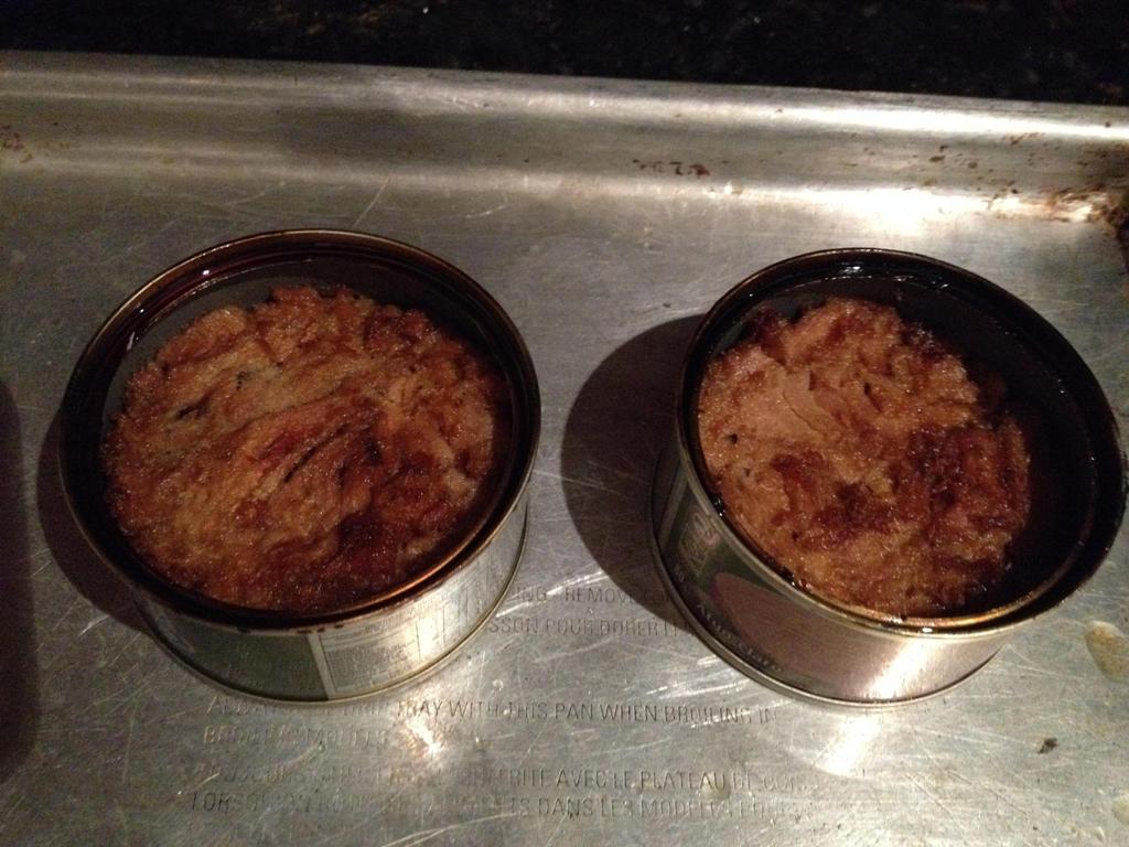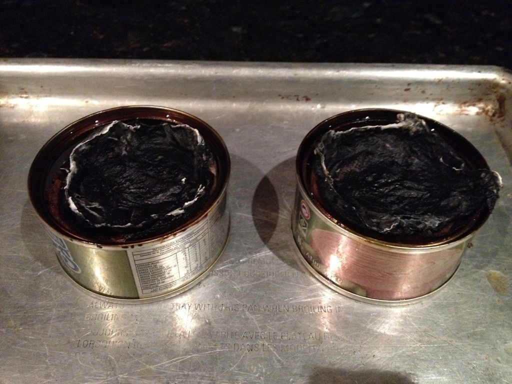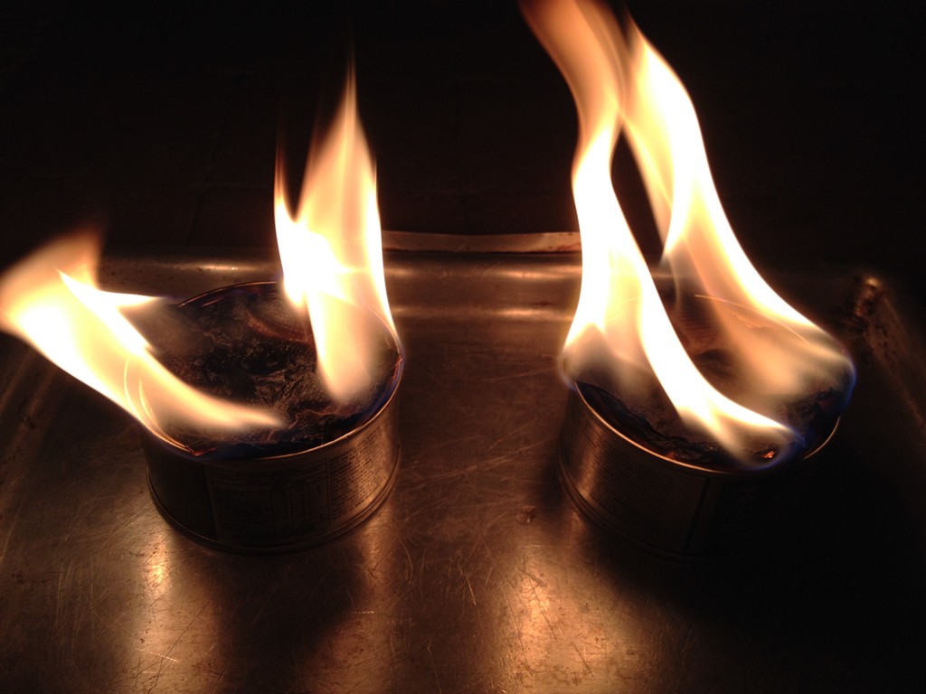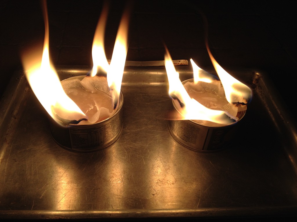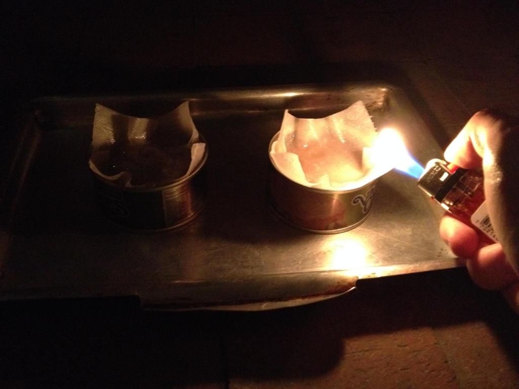 Сміло підпалюйте усі кінці замоченого жиром паперу і спостерігайте за підігрівом тунця.