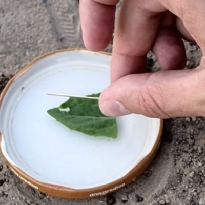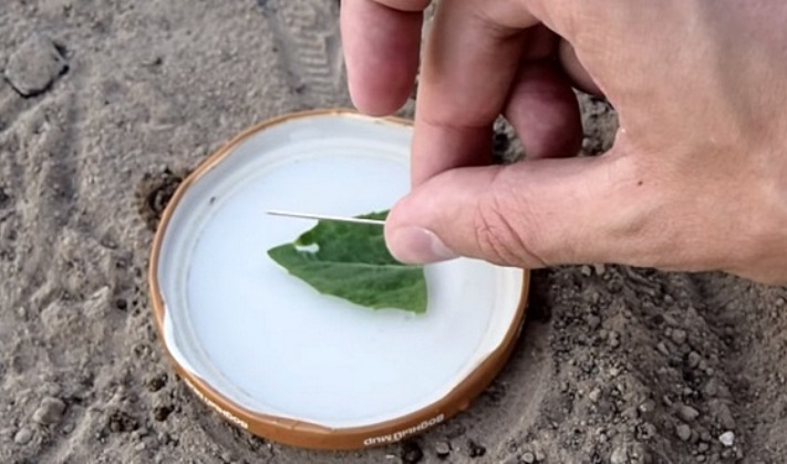 Отже, вам знадобляться: ємність для води, голка і шматочок будь-якого плавучого матеріалу (пінопласт, губка, пробка або простий листок, як в нашому випадку).
