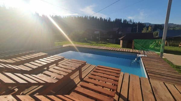 Котедж "Загадка Карпат" розташований у селищі Славське Львівської області, за 2,5 км від витягу "Погар", за 1 км від центру селища. До послуг гостей двоповерховий будинок на 6-8 осіб. На першому поверсі - кухня (газова плита, холодильник, мікрохвильова піч, електрочайник, необхідний посуд, мийка, обідній стіл); вітальня (розкладний диван, стіл зі стільцями, телевізор); санвузол (душ, туалет, умивальник). На другому поверсі – хол (розкладний диван, телевізор, вихід на терасу); три спальні (у кожній є двоспальне ліжко, вішалка для одягу). У будинку встановлено автономне водяне опалення (підігрів підлоги на першому поверсі). Холодна та гаряча вода постійно. Є мангал (дрова надаються за окрему плату). Котедж "Загадка Карпат" знаходиться за 1 км. від залізничного вокзалу та за 1,4 км від автовокзалу.