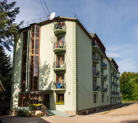 Поїздом зі Львова або з Трускавця до Східниці. Далі маршрутним таксі до санаторію "Зелений бір". Можливе замовлення трансферу за додаткову плату.
